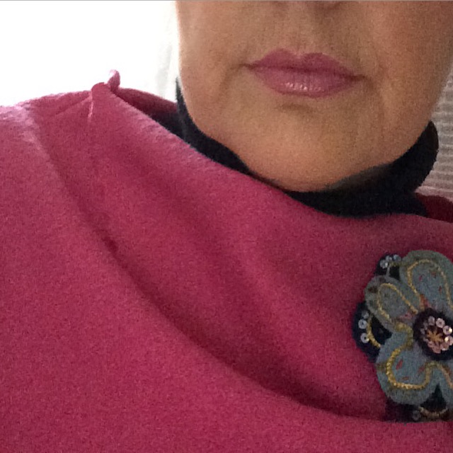 Ein kleine Anstecker vom Flohmarkt schmückt noch den